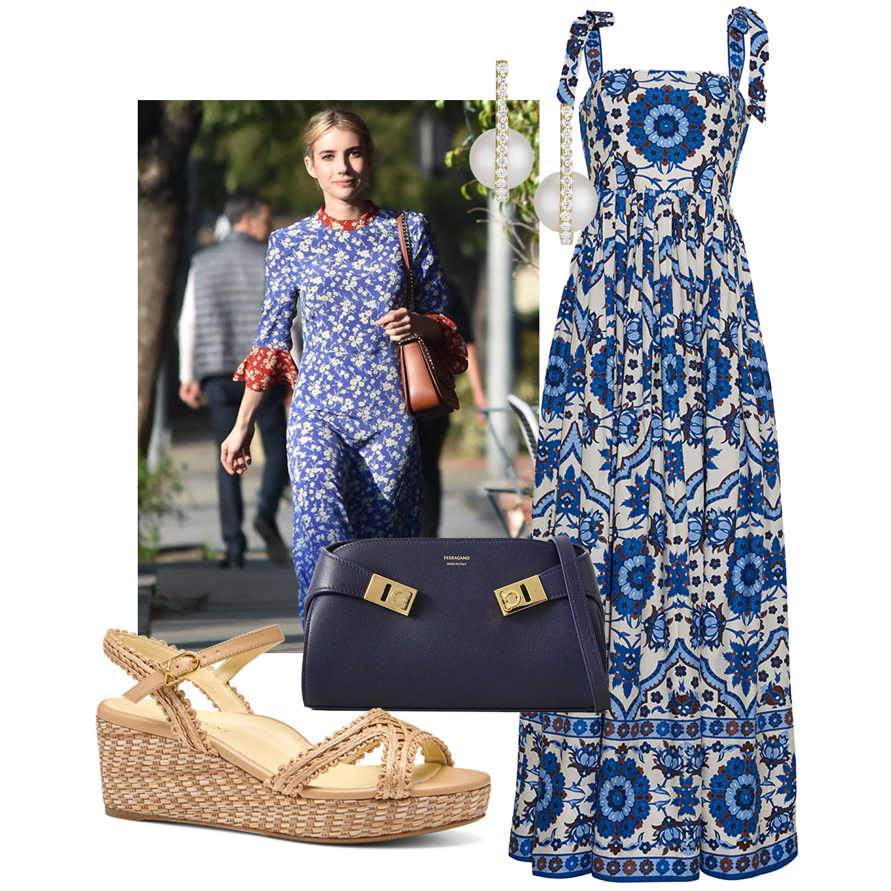 The Perfect Heather 50 brings a grounded touch to this bold, blue moment. With its woven wedge and flattering ankle strap, it’s the kind of summer shoe that plays well with everything, especially a statement maxi. Just add polished pearls and a structured bag for a look that’s equal parts easy and elevated.