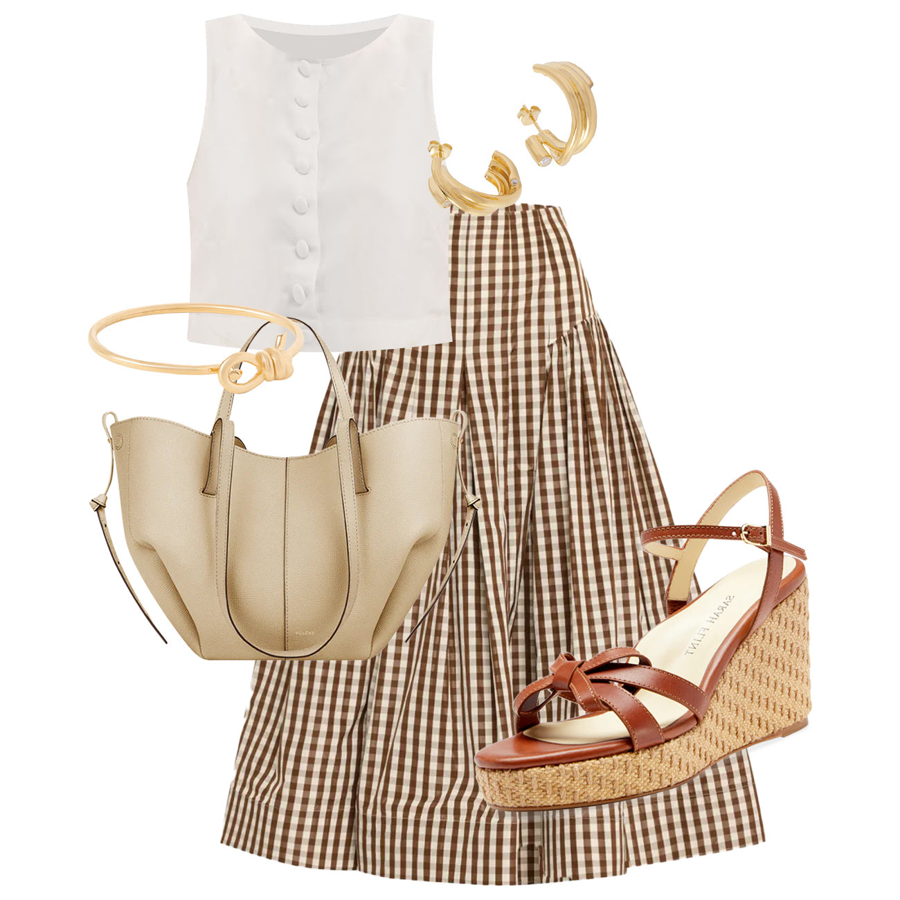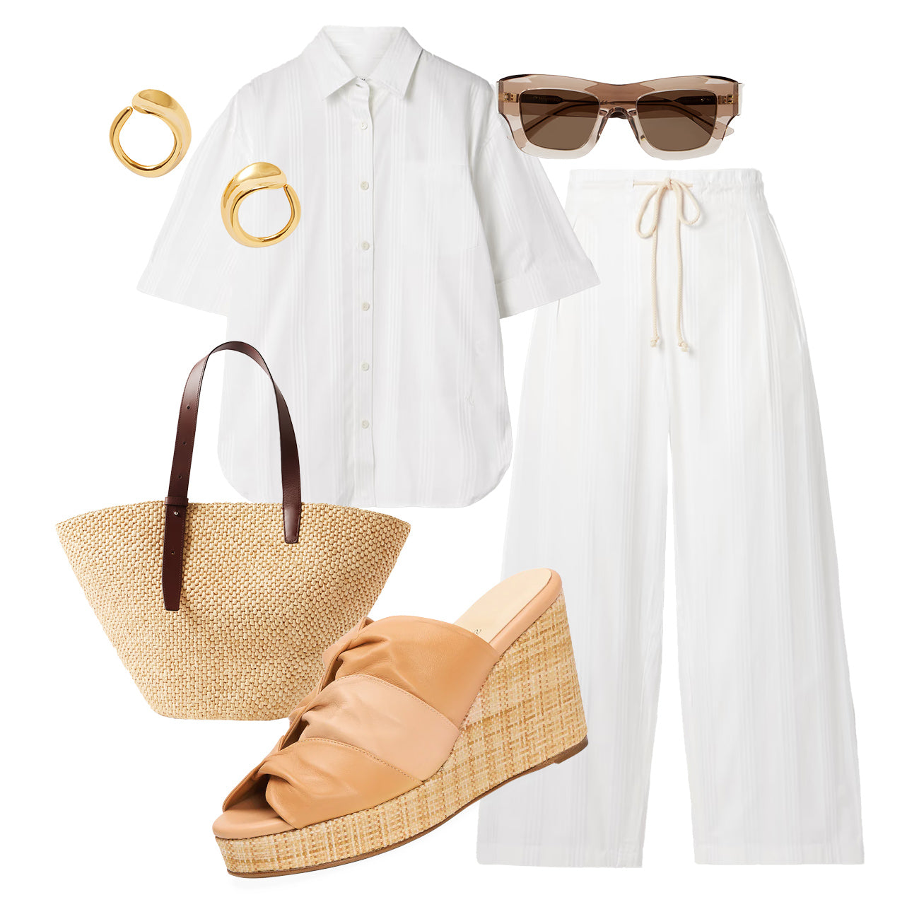 Who says neutral should play it safe? The Perfect Mirjana Wedge 80 in Saddle elevates this tonal look with unexpected texture and confident height. Think voluminous stripes, sculptural gold accents, and sun-kissed linen.