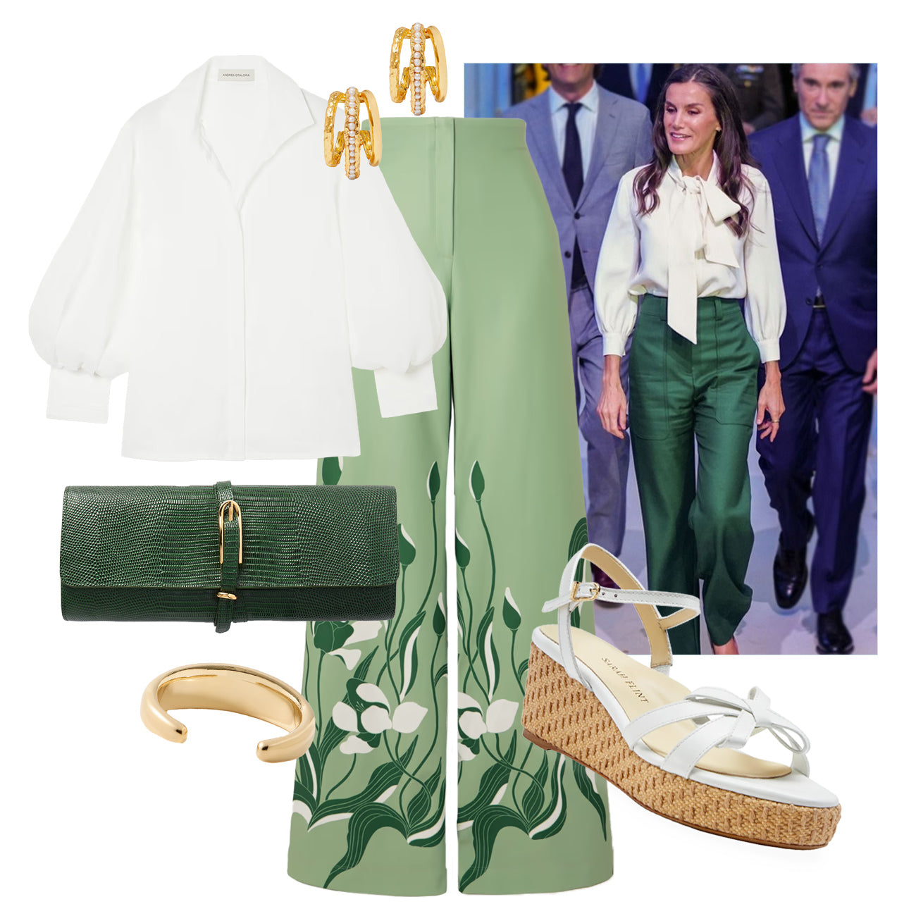 Summer florals, but make them modern. The Perfect Mirjana Wedge 50 adds a sleek pop to this garden-party-gone-glam moment, with crisp white leather and just a hint of lift. Pair it with painterly pants and bold gold for a look that’s polished, playful, and just the right amount of unexpected.