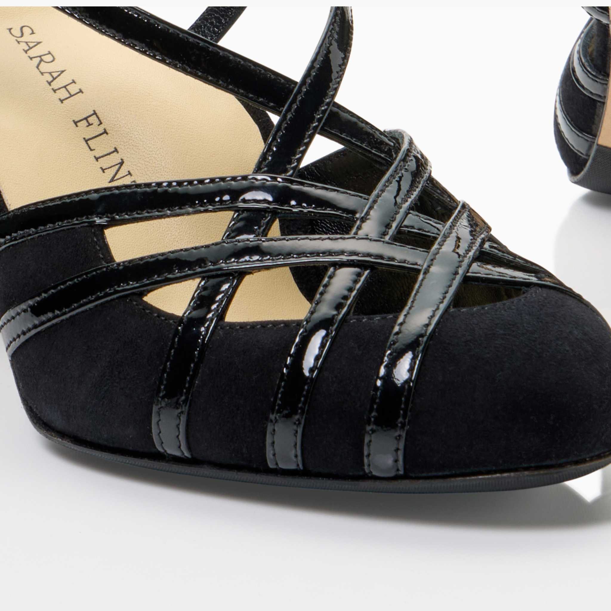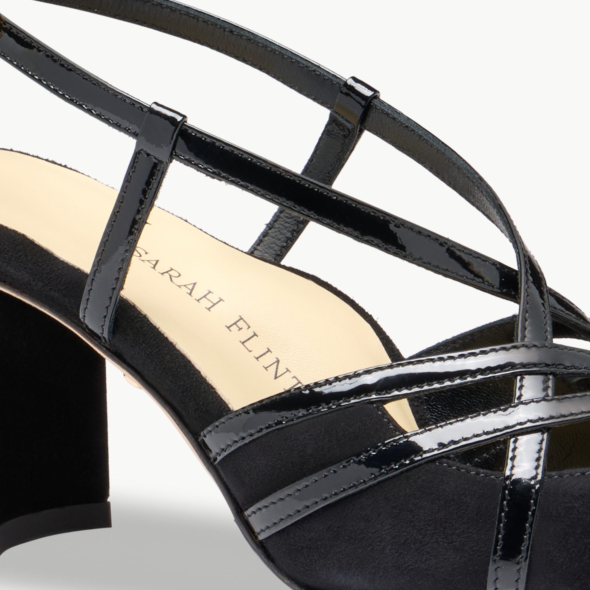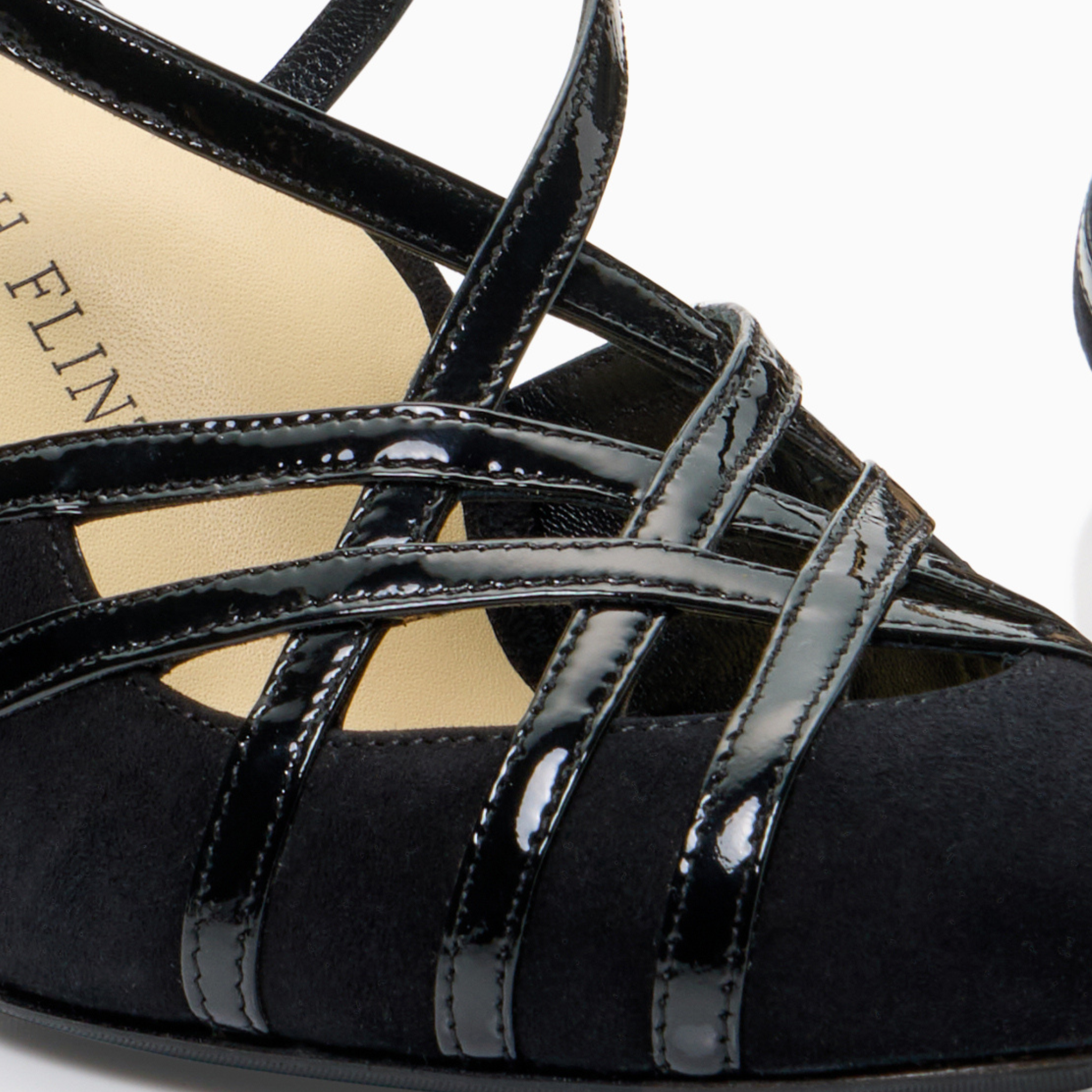 The Perfect Gita is a vintage-inspired strappy sandal designed for timeless elegance and modern comfort. Featuring an interlaced upper and a glossy patent leather finish, this silhouette draws inspiration from classic 1940s–50s evening sandals.