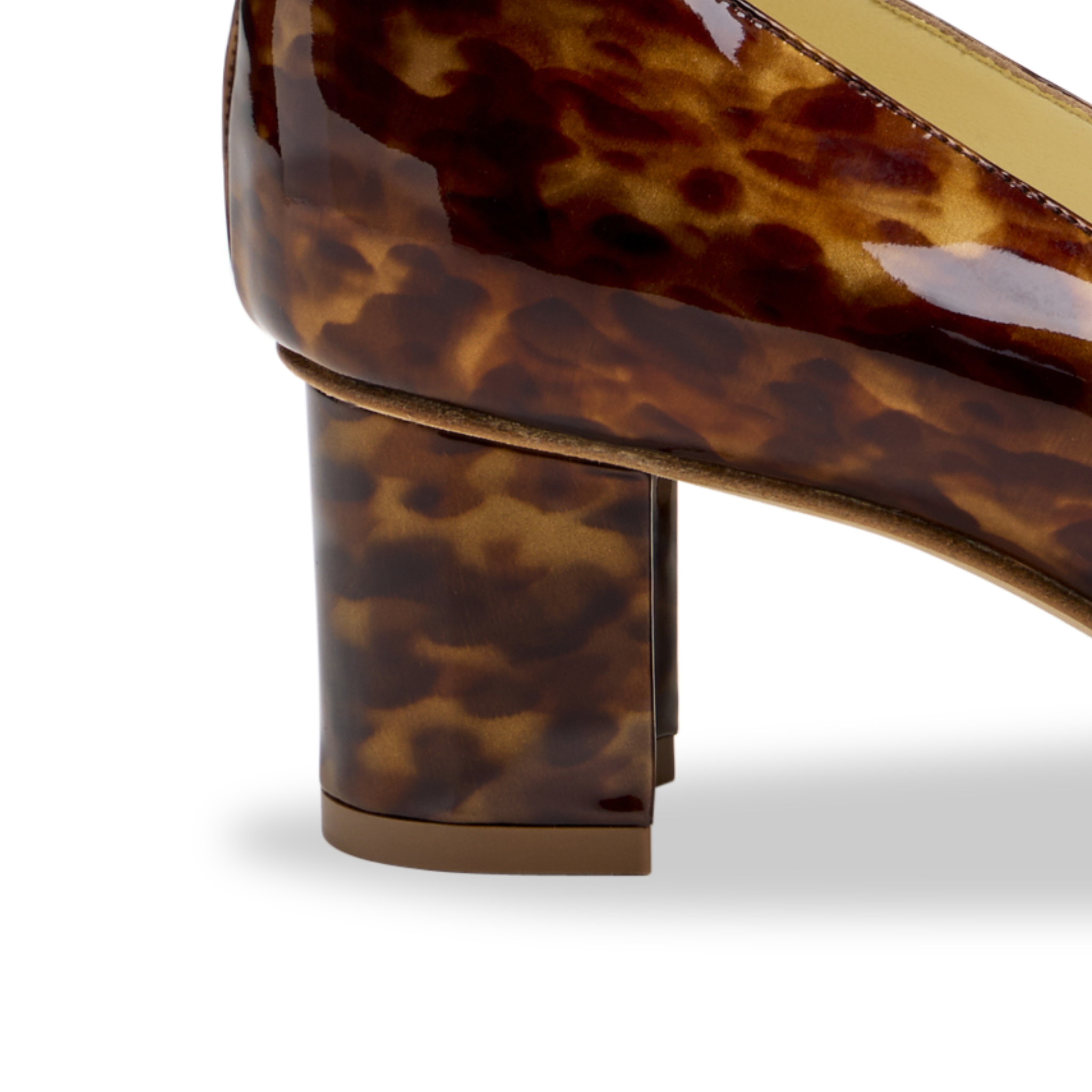 Inset block heel provides height and length without the heaviness of a traditional block heel